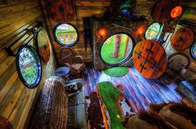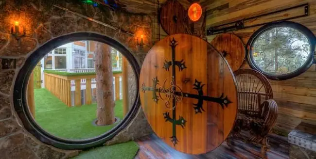 Calling all ‘Lord Of The Rings‘ fans! You need to check out this awesome hobbit hole! The place is owned by LOTR fanatic Gordon Mack and is part of a six-acre property known as Chateau de Soleil. The entire property is available to rent, including the more or less self-contained hobbit hole. So, although you might not be able to live there full time, you could definitely holiday in hobbit style. You could say it’s a little unorthodox due to the fact it’s located in South Dakota rather than The Shire, and, it’s up in the trees rather than in the ground, but we still think it’s rather convincing! The charming tree house is decorated to a high standard with some incredible touches that really make it seem like you’ve stepped into Middle Earth. Check it out!