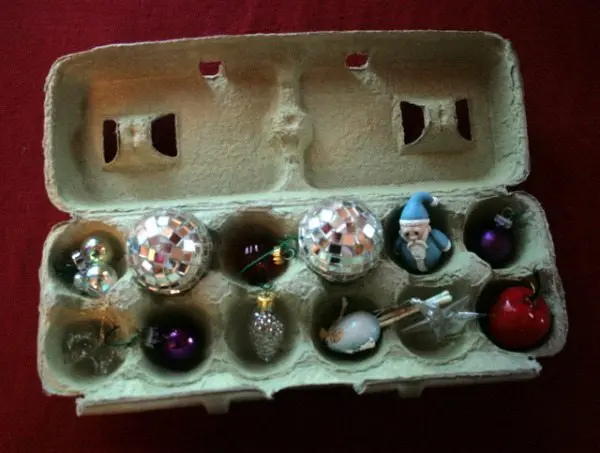 Egg cartons make great containers for delicate ornaments.