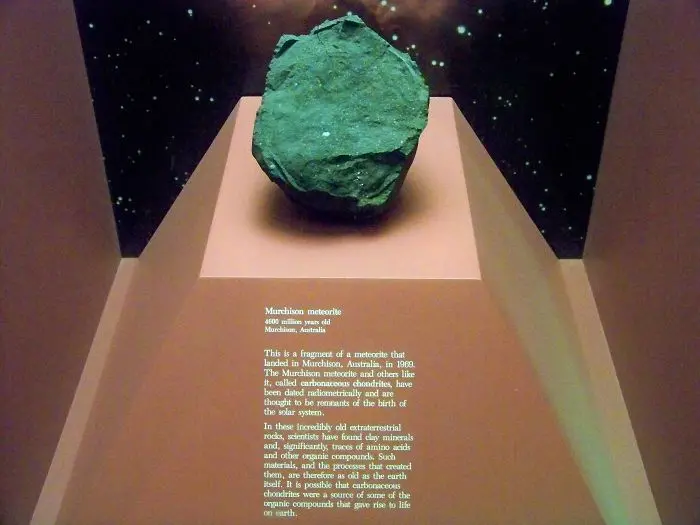 “One of the oldest rocks in existence, the Murchison Meteorite. It’s 4,600,000,000 years old, and likely existed before the Earth itself had completely formed. Interestingly, it also contains amino acids, the chemical building blocks of DNA.”