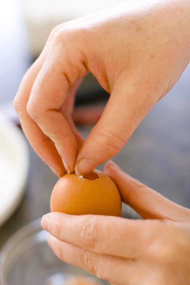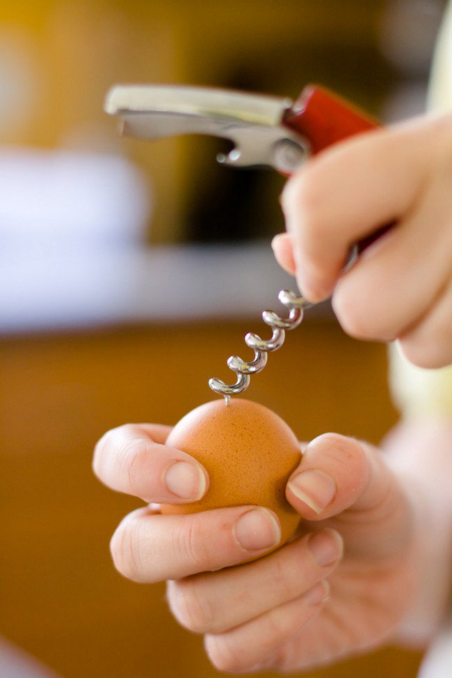 Gently and carefully make a hole in the top of the egg.