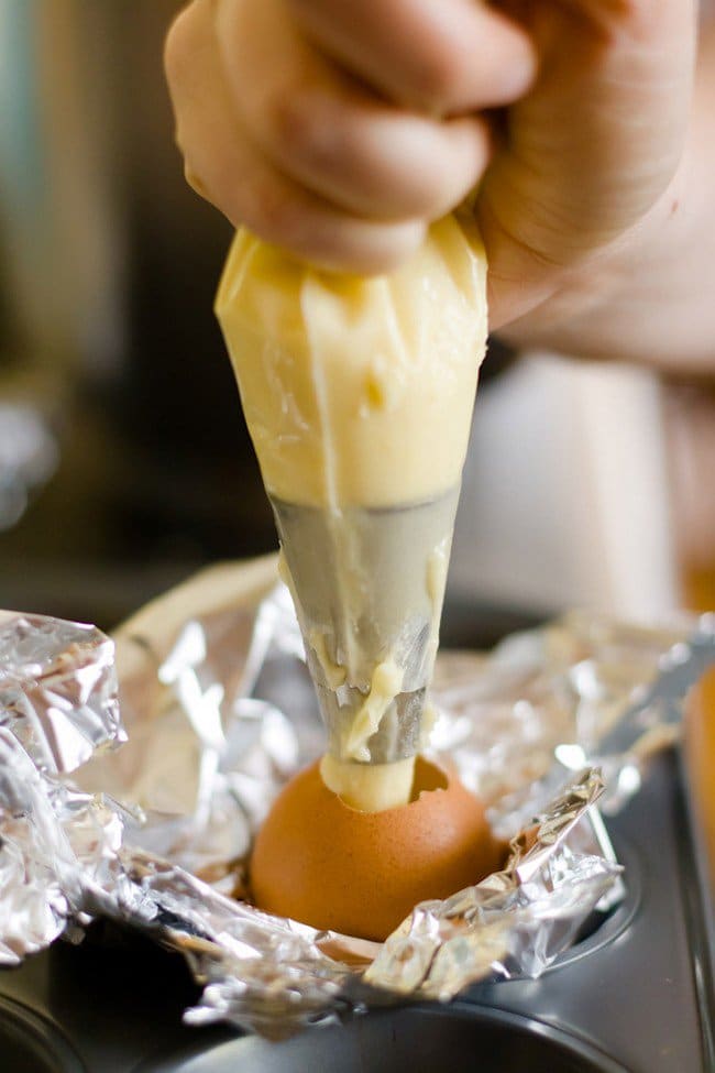Once cooked and cooled, remove any excess batter from the shells.