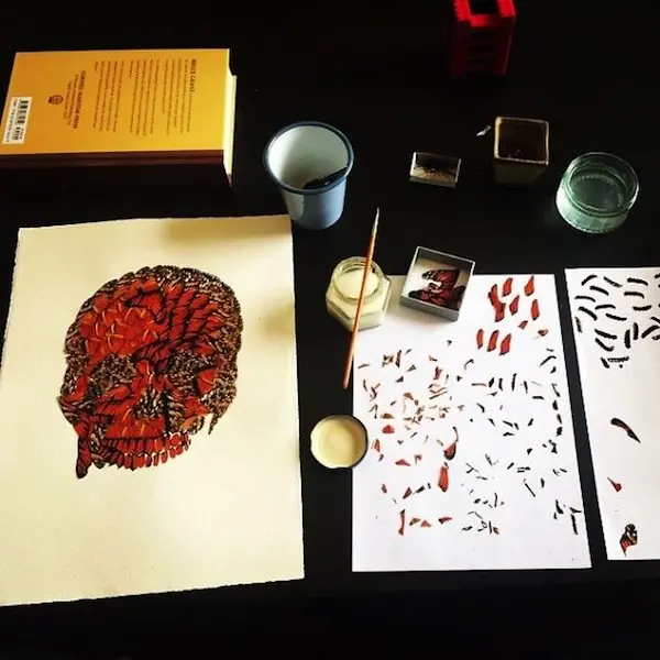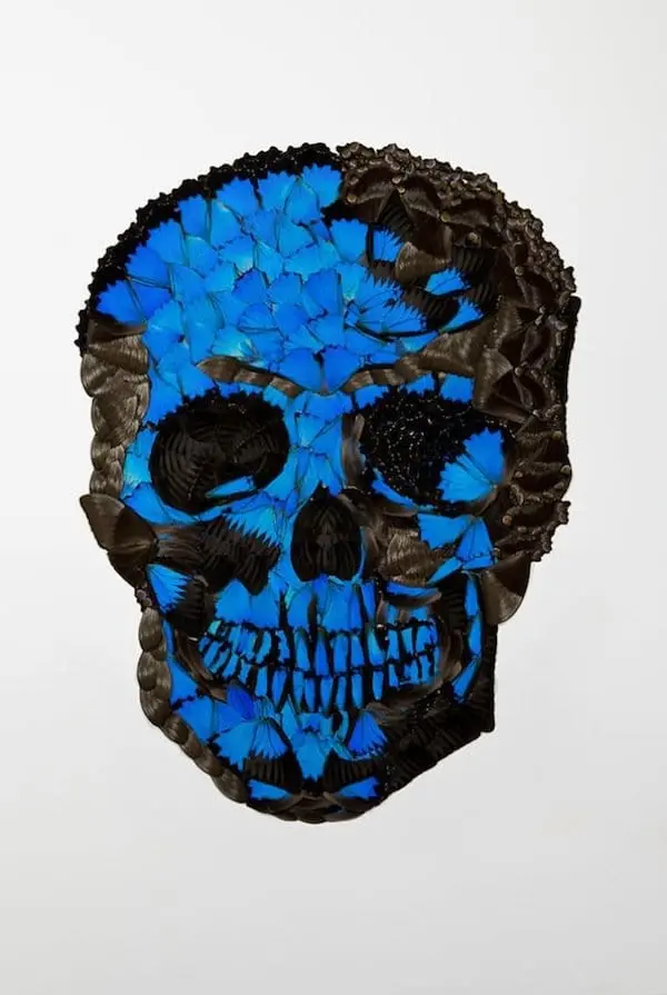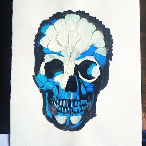 Kelly McCallum is an artist who knows how to stand out from the pack, by picking the weirdest mediums to work with. Her latest choice of materials may disgust, repel or even engender fear in some of you. For in the below series of images, McCallum used hundreds of real butterfly wings to create colorful, ghoulish skull collages, as well as actual tarantula legs to fashion creepy looking flowers. The artist and jeweler told BoredPanda she has always been fascinated by insects, ever since she was a little girl. She finds it curious how some people can be enchanted by butterflies and dragonflies, yet disgusted by spiders and cockroaches. "It is this conflict which I explore in my work," she says. Take a peek, if you dare!