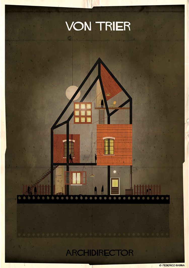 Artist Federico Babina, has created an awesome series of illustrations imagining what famous movie directors' houses should look like. Okay, so in reality most directors probably live in cookie-cutter Hollywood homes, but if they designed their own homes from scratch, this is how they might look. These illustrations are simple, yet hugely effective, and manage to boil down each director's artistic statement into a single structure, which is pretty impressive. Now, who lives in a house like this?