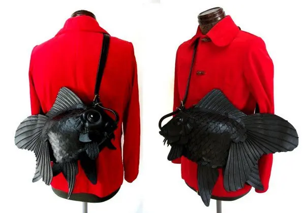 Japanese designer Atelier Iwakiri has created the most awesome shoulder bag which will delight animal and fashion lovers everywhere. The beautifully detailed long-finned goldfish design is setting the fashion world alight as it looks just like a real (albeit huge) fish! Measuring 46 centimeters long and created from high quality leather, the shoulder bag can also be converted into a handbag or clutch. Available in dark brown, red, and brown/black, the handmade-to-order pieces cost around US$990. Check them out!