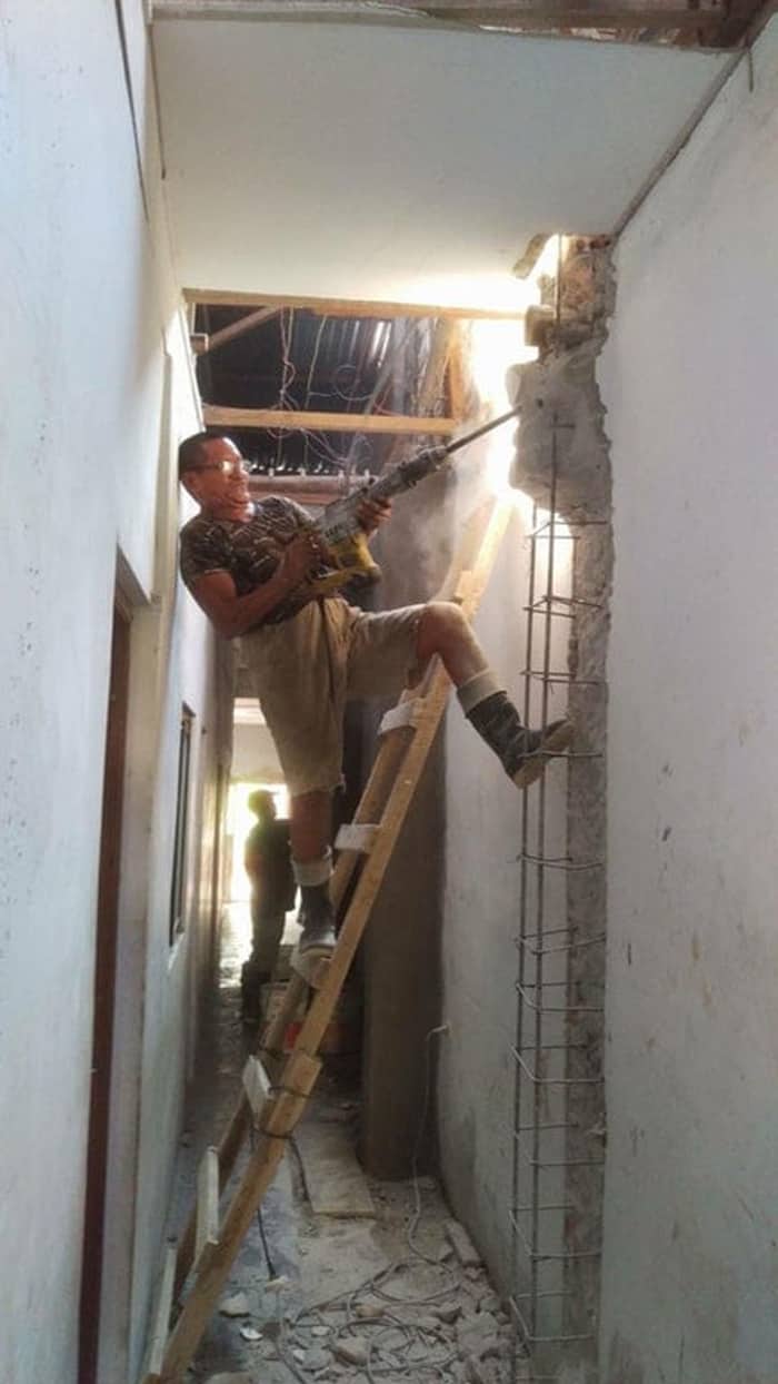You need to be extra careful when handling drill machines. Make sure you’re standing on a reliable platform and you’re wearing protective gears. Most of all, don’t be like this worker below.
