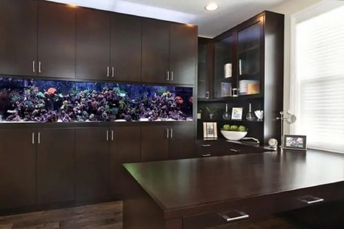 Something as simple as watching colorful little fishes swimming around can really help to de-stress you if you've had a hard day. They're even more enjoyable to admire when your tank forms part of interior design focal point such as the awesome ones you will see below.