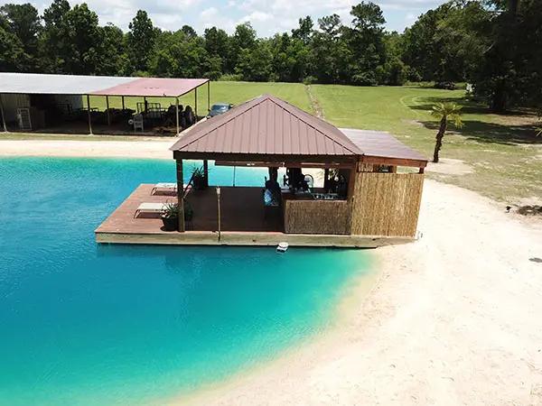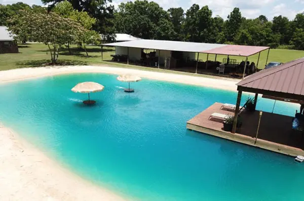 Zydeco Construction, a Louisiana-based company, specializes in constructing man-made backyard beach oasis’s with crystal blue water surrounded by sand. In other words, this company can transform your backyard into a tropical swimming paradise. Eric White, the company owner, found a way to build customized swim ponds to make everyone’s dream come true. The size of the pond will depend on the land area and finances. You can later add other amenities such as floating cottages, umbrellas, gazebos, volleyball nets, and more. The company also offers outdoor kitchens and in-ground trampolines per customer’s request.