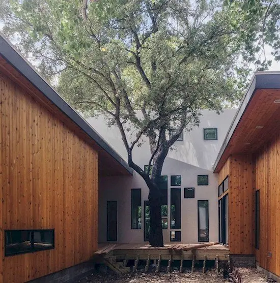 The architects of this private residence in Austin, Texas, have made room for this beautiful tree growing through the middle of the property!