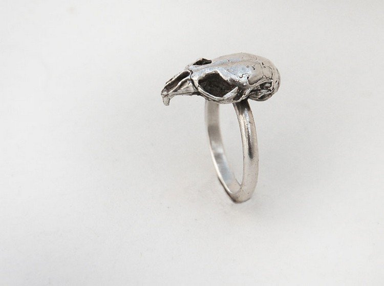 Bethany Robinson is a collector, jewelry maker and artist. She collects seedpods, insects and skulls from throughout the countryside of Cornwall, England and uses them to create spectacularly unusual pieces. She creates jewelry from what many would perhaps find strange and macabre… casting molds from bird skulls, feet and even the pelvis of a mouse! The way in which she casts, using wax injection and lost wax investment, allows her to replicate all the incredible detail within the original bones. The process is very long and laborious but the end results are amazing!