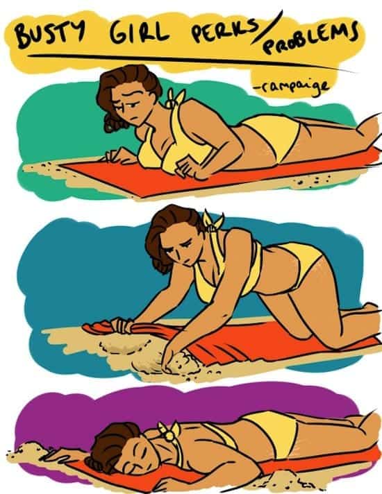 Modern society has an obsession with big boobies. Every year, thousands of women go under the surgeon’s knife just to get bigger fun bags, because they are viewed as sexy and desirable. Yet some of us, the ones born with gigantic melons, know the truth. Big breasts are nothing more than a pain! Not only do people stare, but they give us a sore back and leave us open to all sorts of breast-related fashion disasters! Like the problems highlighted below, take a look!