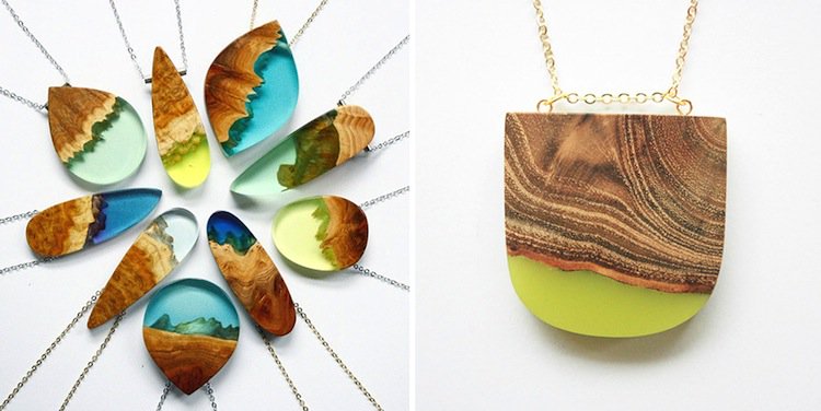 Britta Boeckmann certainly knows how to pretty up a plain old piece of wood! As you'll see from the gorgeous images below, Boeckmann is expert when it comes to creating amazing and unique pieces of wood fragment and resin jewelry. And what's more amazing? The artist claims she doesn't have a plan when beginning design of each individually hand-crafted piece. Instead, Boeckmann uses the natural form of the wood fragments to define the shape of the jewelry, before fusing the wood pieces with colored, and sometimes even glow-in-the-dark, resin. Take a look!