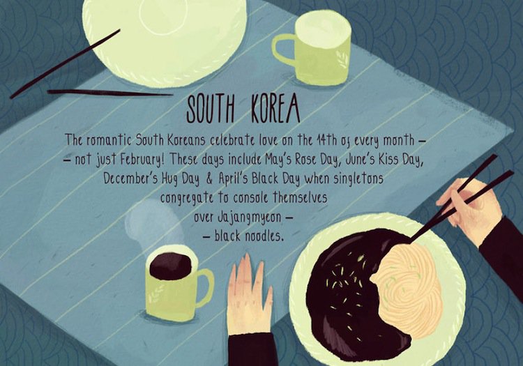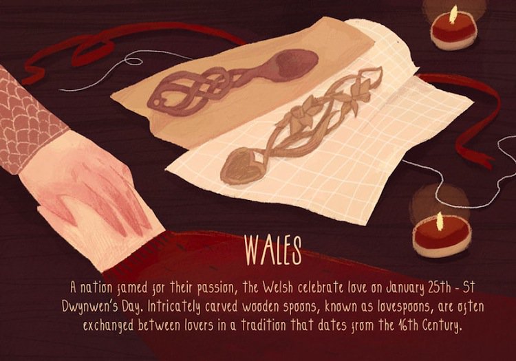 Did you know that in South Korea, people celebrate the equivalent of Valentine's Day every single month? Or that in Wales, lovers give each other wooden spoons to celebrate their passion? As Valentine's Day approaches, artist Marie Muravski, from Georgia, has teamed up with jewelry company 'Vashi' to illustrate celebrations of love from all around the world! Take a look!