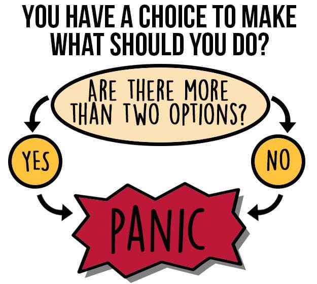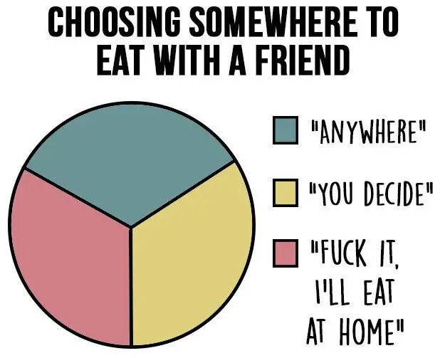 Life is pretty much just a sequence of events that you have to make many decisions about. Which is bad news for all of you out there who hate making decisions! It's tough being indecisive because people can think you're just flaky. But, really, it's because you have to think about every single potential outcome of your decision, from how it will effect you, to how it might impact other people around you. So, even the simplest decision, such as where to go eat with your friend, becomes a tangle of thoughts from 'Will my friend be disappointed with my choice?', to 'Will I regret not going somewhere else?', and everything else in between. Jamie Jones, over at 'Buzzfeed', created a series of charts that you'll totally relate to if you hate making decisions! Check them out!