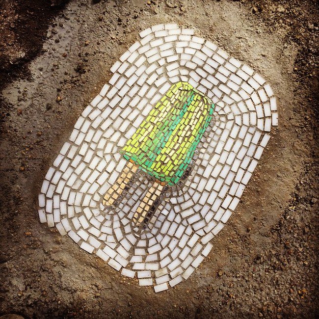 Recently we wrote about Jim Bachor’s floral pothole mosaics here. Now the Chicago artist is back with a mouthwatering new project to repair the potholes of the city. Potholes are dangerous and unsightly and Bachor is breathing new life into his city with these beautiful creations. Bachor hopes that the people in charge of the area will soon begin to tackle the issue and in the meantime we expect to see more awesome pothole mosaics from the artist.