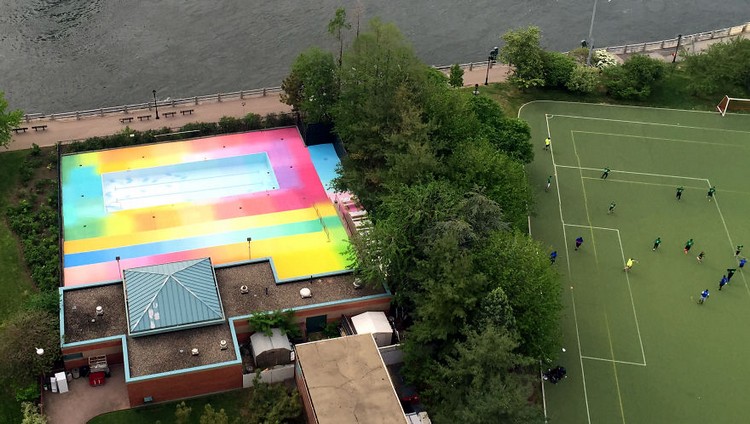 This piece 'ASYLUM' was given its name due to the creation of it pushing Rieger's endurance to its very limit. Also Roosevelt Island (where the pool is situated) was once home to the Metropolitan Asylum. After its closure there was a type of residential community inspired by utopia, which took the asylum's place. The artist wanted to question if things should be isolated just because they're different? As he says himself…