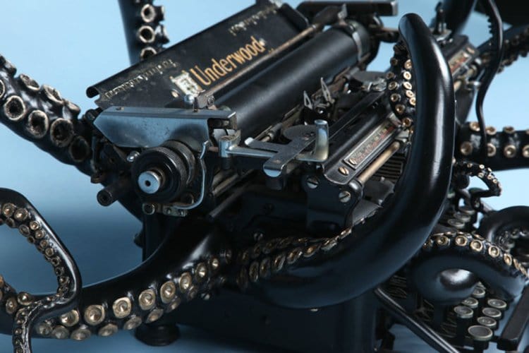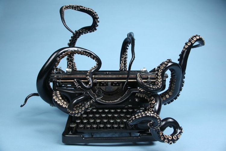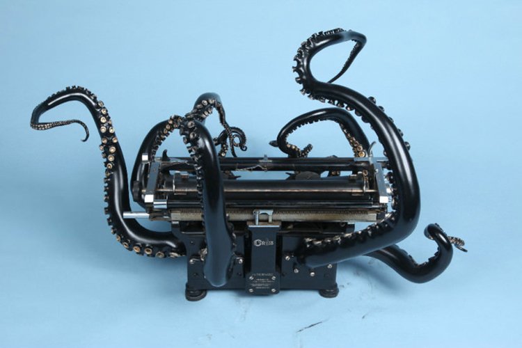 The tentacles added to the typewriter are sculpted with bronze, and everything but the suckers are painted black, which matches in well with the rest of the Underwood. Brown has created lots more awesome sculptures, so if you like this, then be sure to check out more of her work! Now, let’s take a look at this ‘type-topus’!