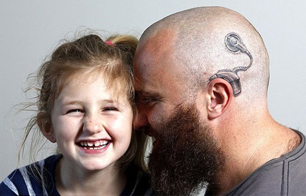 It’s heartbreaking for a parent when their child is born with, or develops, a disability or illness. Not only do you worry about the issue itself, but you also worry how they will cope and be viewed by others. New Zealand native Alistair Campbell is here to show us parenting done right. His daughter Charlotte suffers from extreme hearing loss and received her first implant aged just 4. He decided to take action in making her feel better about herself by getting an implant tattooed on his head, and the resemblance is awesome! You’ll notice another cool dad at the bottom of this post did the same wonderful thing! Yay for people!