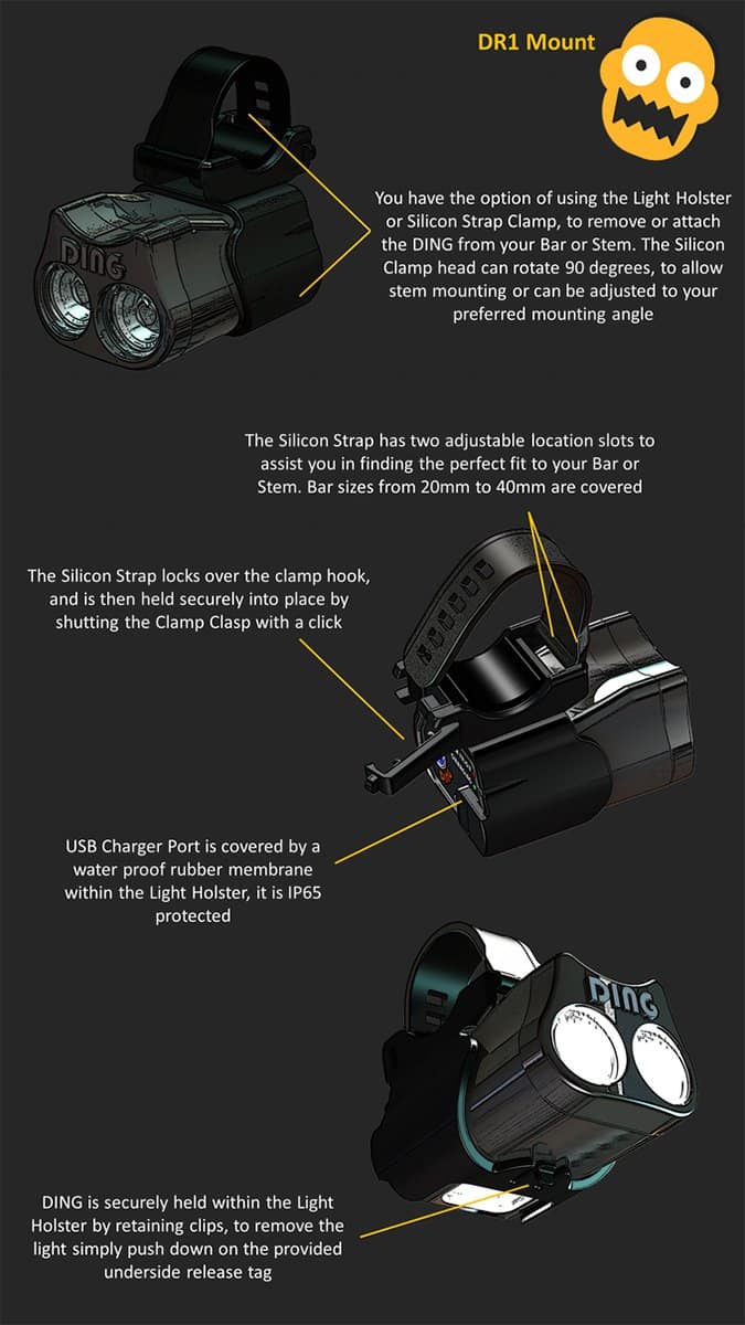 Bike lights are an absolute must for safety, but some of the existing ones available just don't make the cut. 'DING' bike lights are here to make a difference. Like standard lights, they brighten your path ahead, however DING lights also light up the area around your bike at the same time for optimum visibility. DING lights would be a great addition to road bike users, but will also be great for mountain and off-road bikers. Amazingly, there is even a USB charging built in! Take a look!