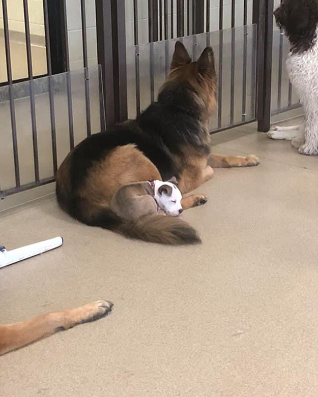 “All the dogs seem to enjoy the snuggling company. Even the weiner dogs.”