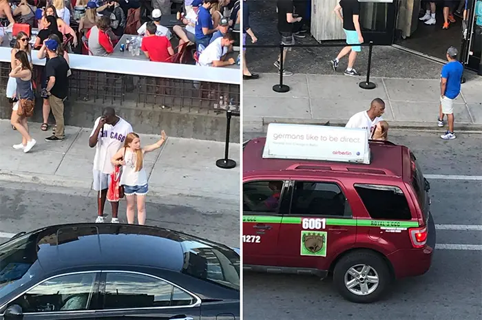 “There was a blind Cubs fan trying to hail a cab for several minutes until the lady came up and asked him if he needed help hailing a cab. She stood there with him until one pulled up.”