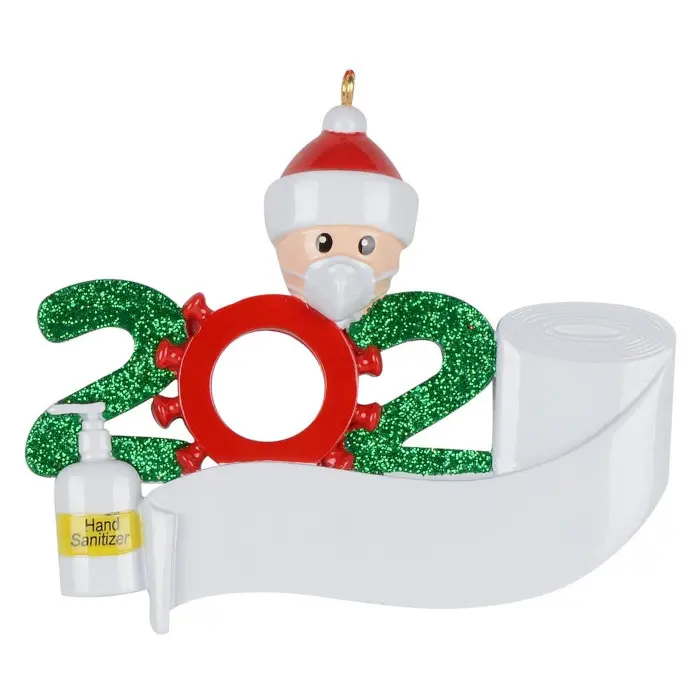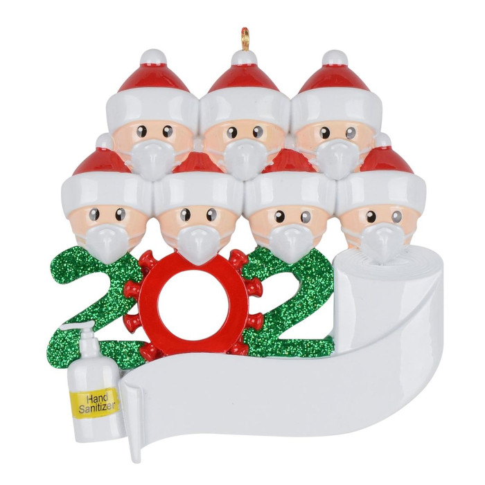 This clever and timely Christmas ornament features glittery numbers, a caricature of the COVID-19 virus, a roll of tissue, a family wearing face masks and a pump bottle of hand sanitizer. In other words, this Christmas tree decoration perfectly encapsulates our 2020 experience. We’ve spent a good chunk of the year donning face masks and always making sure we had hand sanitizer in our personal arsenal whenever we’d venture outdoors. Face masks and hand sanitizers have become incredibly necessary for making living in the new normal possible. So why not honor them by adding them to the seasonal décor?