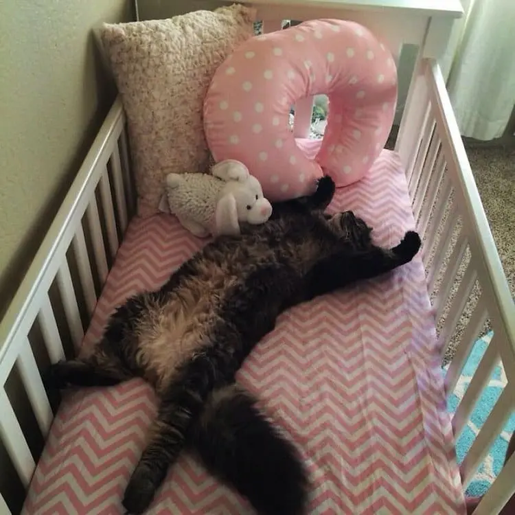 When a couple constructed a crib in preparation for becoming parents, they found another member of the family took a sudden shine to it. Finn, the couples' nearly 20 pound cat, would be found sleeping in the baby's crib regularly. Check out how comfy he looks, it's hilarious! Maxb176, who posted the below images of Finn on BoredPanda said that due to his girth, the couple had been surprised Finn could even clear the railings of the crib!