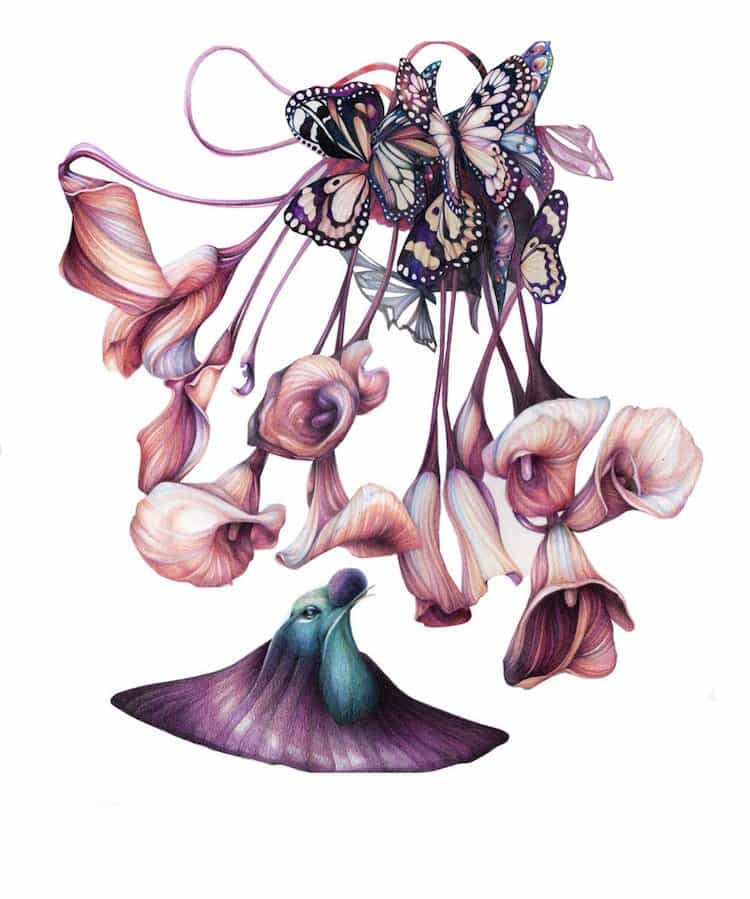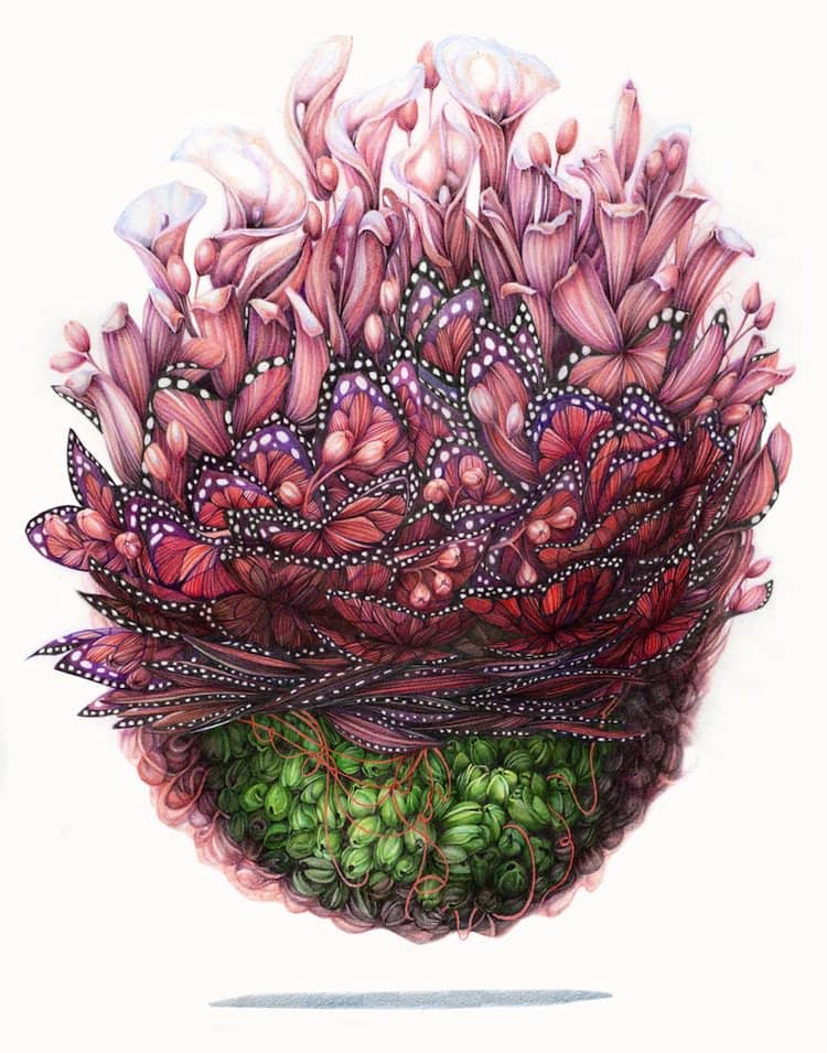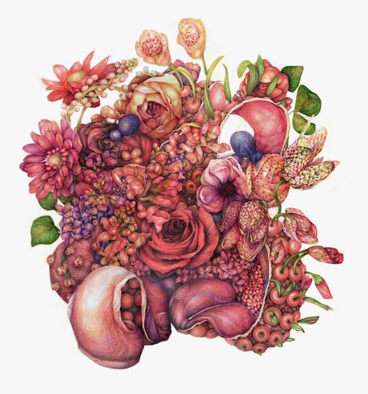 By fusing flowers, butterflies and human organs in her art, painter Jillian Ludwig hopes to remind the viewer, and herself, of the intrinsic strength of a woman. Wow! How on earth did she come up with such an idea? Still, despite being rather bizarre and kind of freaky looking, Ludwig's art has its own beauty to it. Colorful and detailed with more than a hint of the surreal, her work tricks the eye and certainly provides plenty to look at. Take a look!