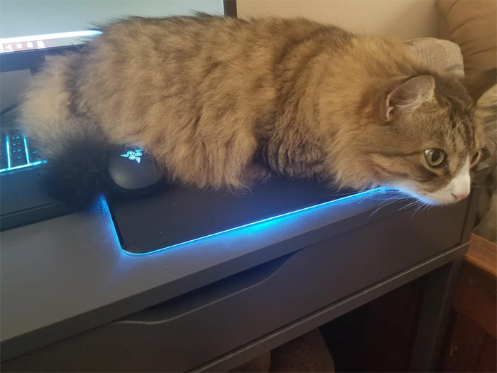 “The cat is trying to steal my job…”