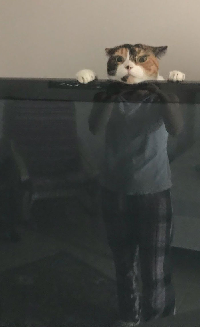My Wife Just Texted Me This Picture Of Our Cat Playing Behind The TV