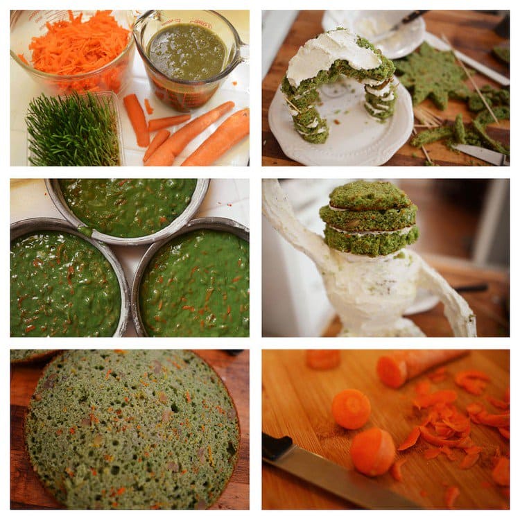 The little guy is made from a very tasty sounding caramel pecan turtle cake. Even though his eyes look very real, they're made from modeling chocolate. They get their shine from a clear piping gel which is laid over the top.