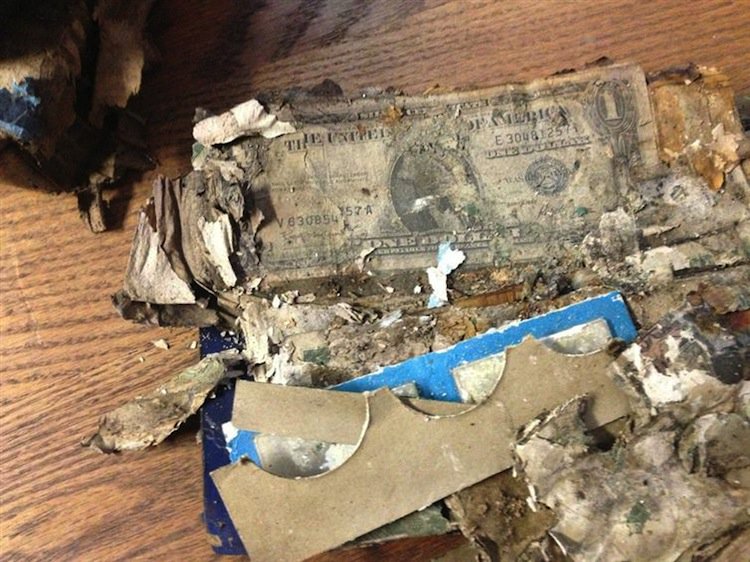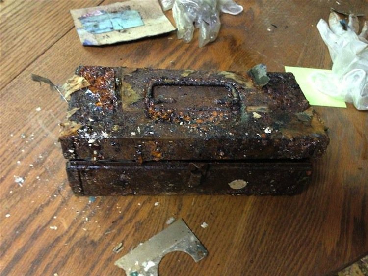 Water had leaked from a pipe a few years back, meaning everything in the safe was wet.