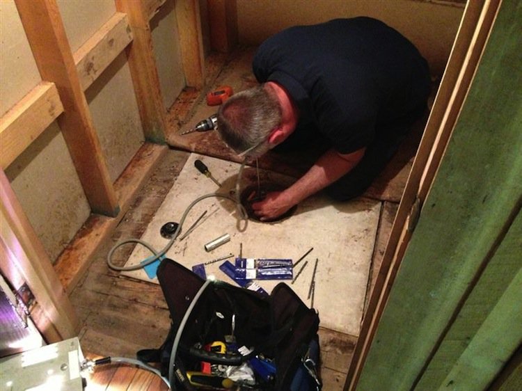 After seeing the poor condition of the carpet in the closet, he decided to strip it out. And what did he find? A hatch in the floor!