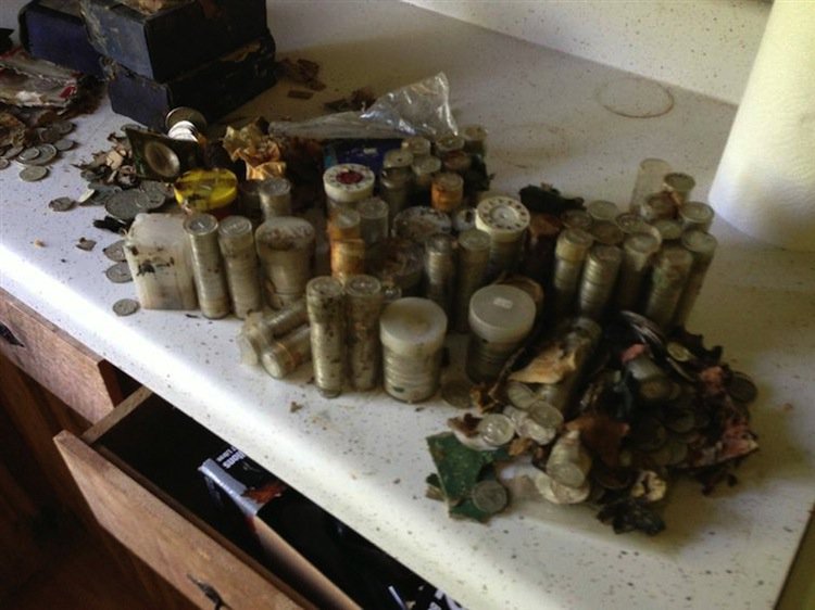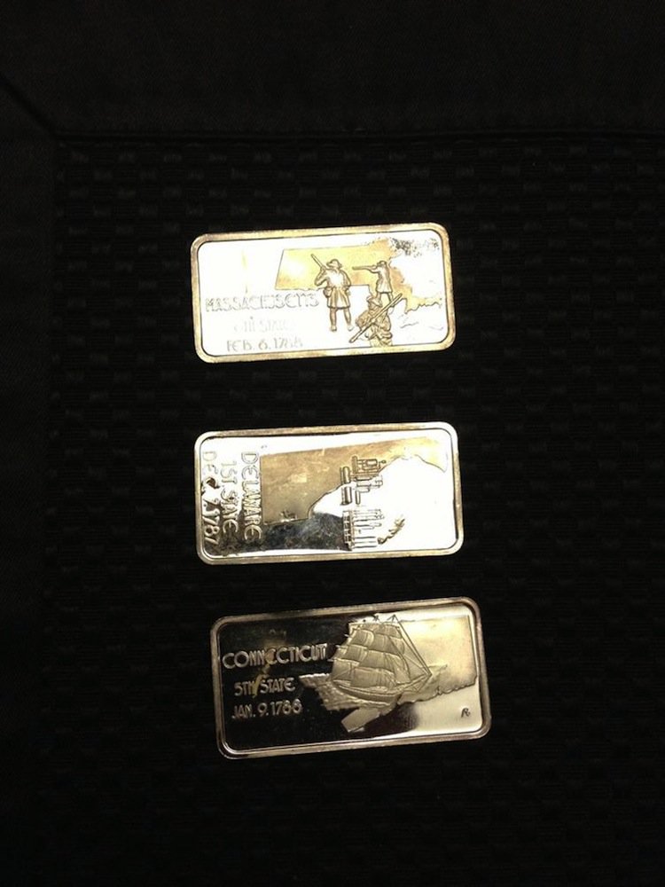 What a lot of treasure! According to the guy who found these, all the coins pre-1964 are made of 90% silver and are therefore worth about twenty times the face value of the coin. In addition, the coins from 1965-71 are made with 40% silver and are also worth more than their face value, meanwhile the silver bars are worth about $778 each! Amazing!