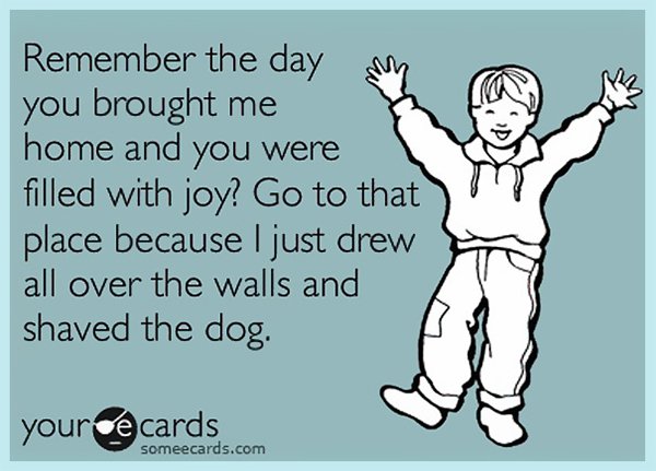 You don’t have to be a parent yourself to know that it’s a stressful role. You know the feeling of pity and embarrassment you feel for those parents whose children are having a tantrum at the supermarket? Well, imagine living with those outbursts numerous times a day, numerous days a week! However, of course, any parent will also tell you that its the most rewarding experience in the world to have children and all the hard work is worth it. Despite this, there is still pleasure to be found in being brutally ‘honest’ about the hardships of parenthood. So, take a look below at 14 hilarious and cynical ‘Someecards’ about parenting and prepare for a good laugh!