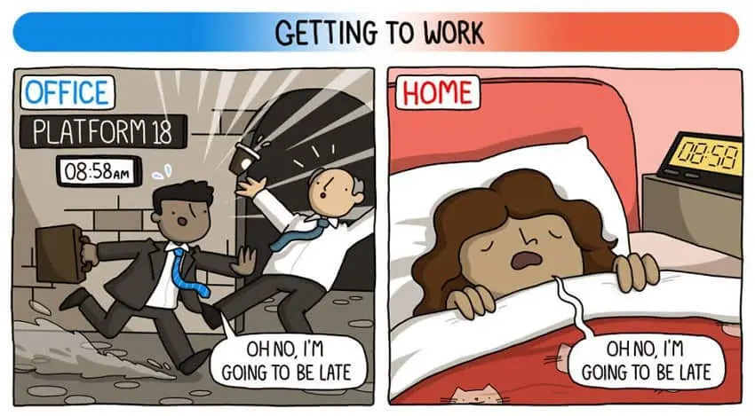 Depending on your preference of work setting, you can now choose to work from home or work at an office. While both settings have their own pros and cons, it’s essential to decide which of these two fits you better. Being comfortable and satisfied with your work environment can enhance your performance and disposition at work. If you’re looking for a job, this post can really help you decide which job offer to pursue. Nothing can explain the details better than graphic illustrations. James Chapman depicts the differences between having a home-based job vs office-based job through this comics-illustration.