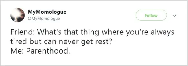 Becoming a parent is life changing in many ways. You feel a whole new kind of love when you have kids. However, you also feel a whole new kind of stress and experience a tiredness like never before! Of course, children are rewarding and wonderful. But, there’s no denying that they can also drive you pretty nuts at times. Here we have some honest tweets about parenting that show what it’s really like in an amusing way. Take a look!