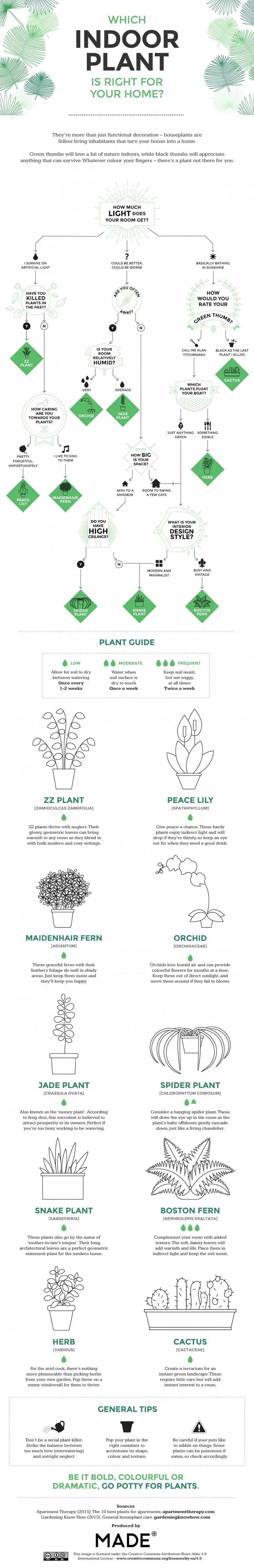 Having a houseplant can be excellent for a variety of reasons. They add a decorative touch to your room, sure, but indoor plants can even purify the air and help you to de-stress. So, what's not to love? Sometimes the issue is that you're worried about your ability to take care of a plant, either because you're away a lot or simply because you have a tendency to forget to water them. But, fear not, even those without a green thumb anywhere in sight can have a houseplant, you just need to choose the right one! The people over at 'Made', in conjunction with 'Visually', have created this awesome flowchart that will help you pick out the right indoor plant for your house. All you have to do is answer the questions and you'll soon find out what sort of plant is the best for you.