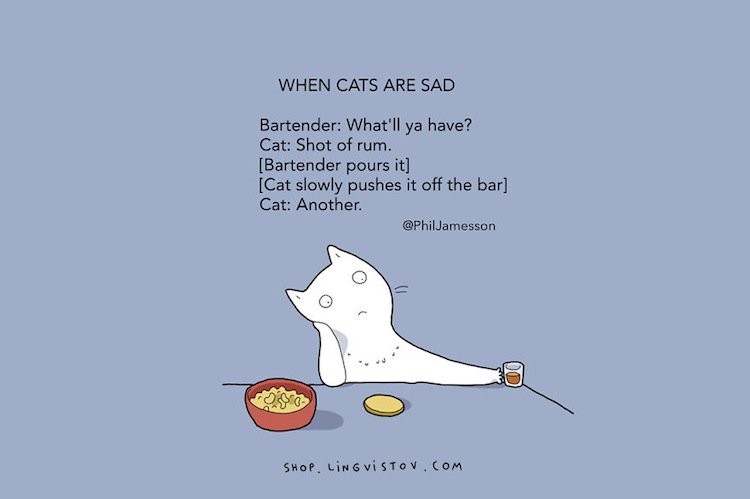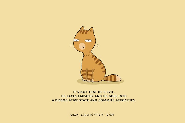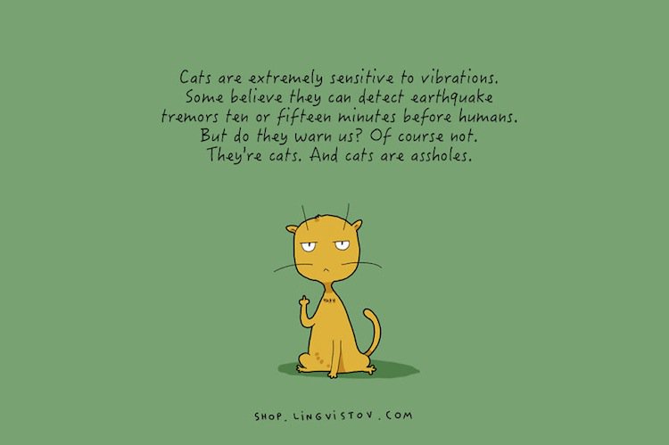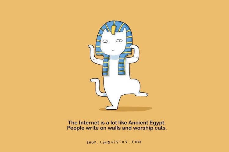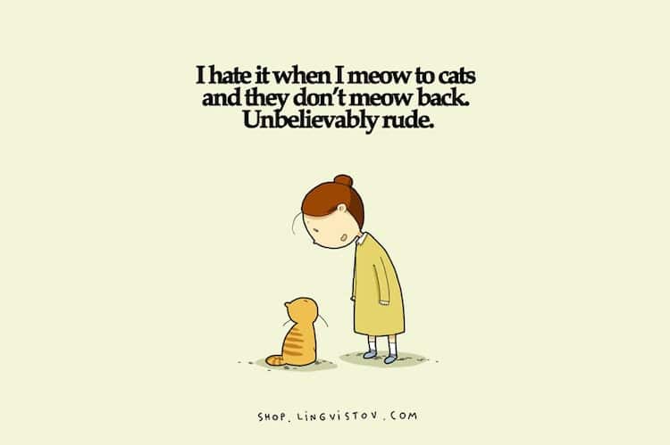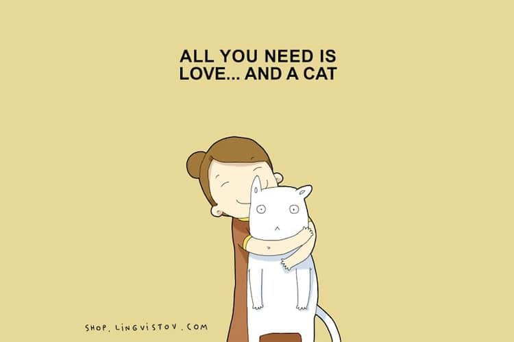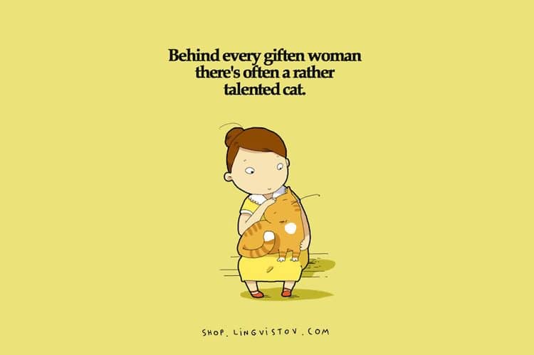 All cat owners would certainly agree, cats can both make your day and annoy the living daylights out of you! They're cute and cuddly…when they want to be. The rest of the time they treat you as if you don't exist, or as a scratching post, or worse! Now Russian company 'Lingvistov', consisting of design duo Asia and Landysh, have come up with the perfect solution that shows just what it is like to live with felines. Lingvistov's "illustrated truths" about cats are both funny and true. Check it out!