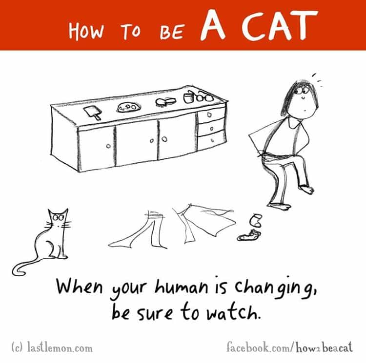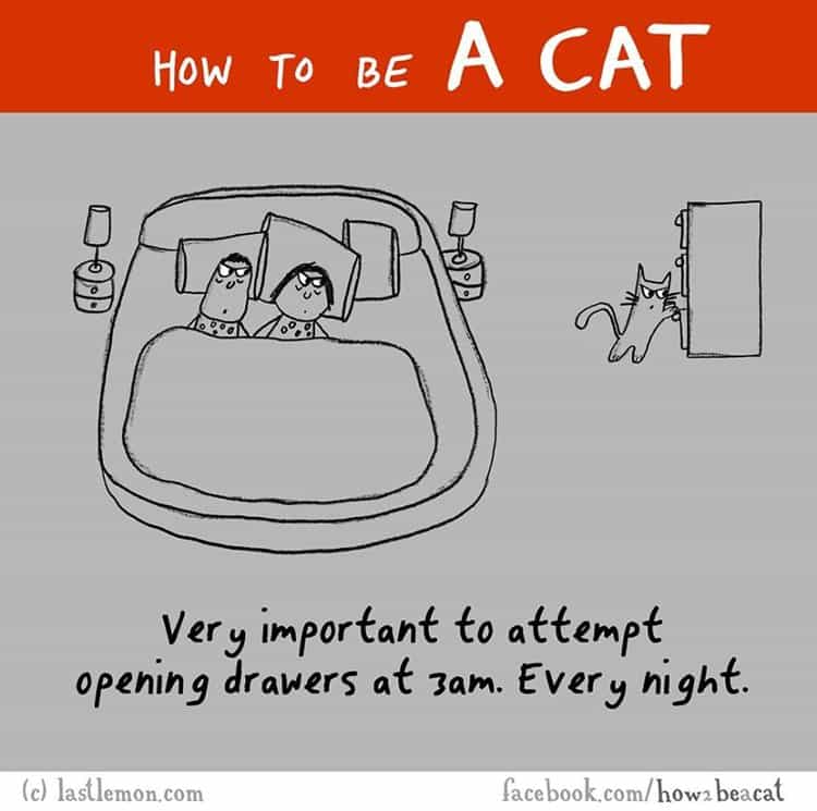 If you've ever wondered how to be a cat, these cute illustrations will help you out. Lisa Swerling and Ralph Lazar, the folks behind the website Last Lemon, created this series of illustrations in homage to those wonderfully weird creatures we call cats. These hilarious drawings will strike a chord with any cat owner, and are hugely universal. If you've ever woken up with a cat staring right at you, or been joined on bathroom breaks by your feline friend, then you'll understand. Check it out!