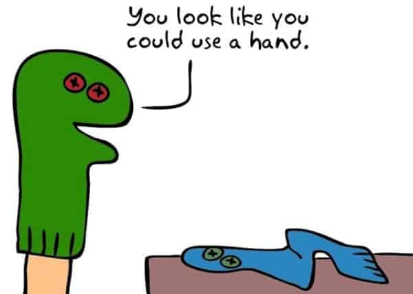 Back in the day, this was an innocent joke about two sock puppets. Today, it's a slight against physically disabled!