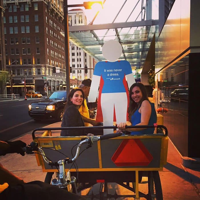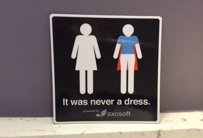 Activist, author and programmer Tania Katan has come up with a novel way of brightening up mundane womens' toilet signs. Instead of the dress-wearing bathroom sign figure we're used to, Katan's signs feature a woman in a superhero-style cape, along with the slogan, "It was never a dress". A clever design, sure, yet what's the point of it? Turns out Katan, the Curator of Code at software developer Axosoft, launched her "It was never a dress" campaign in an effort to encourage more women into tech jobs, a usually male dominated domain. Check out the cool imagery below…