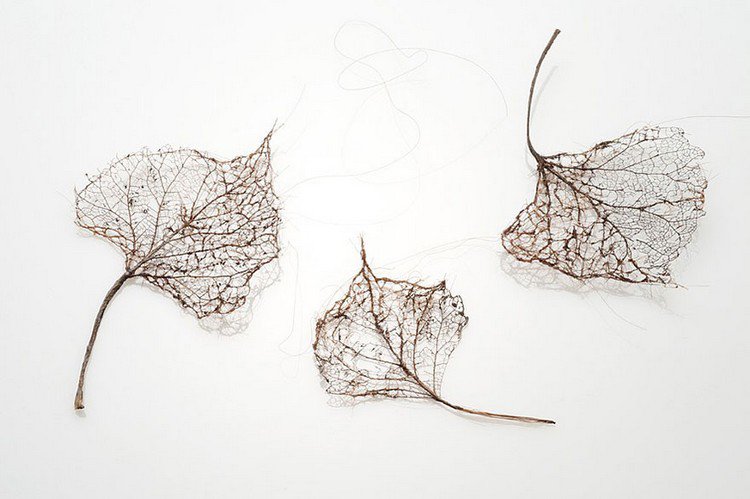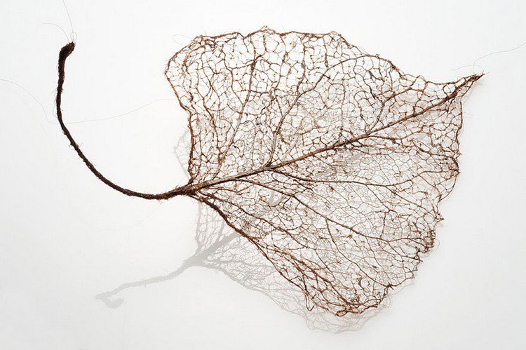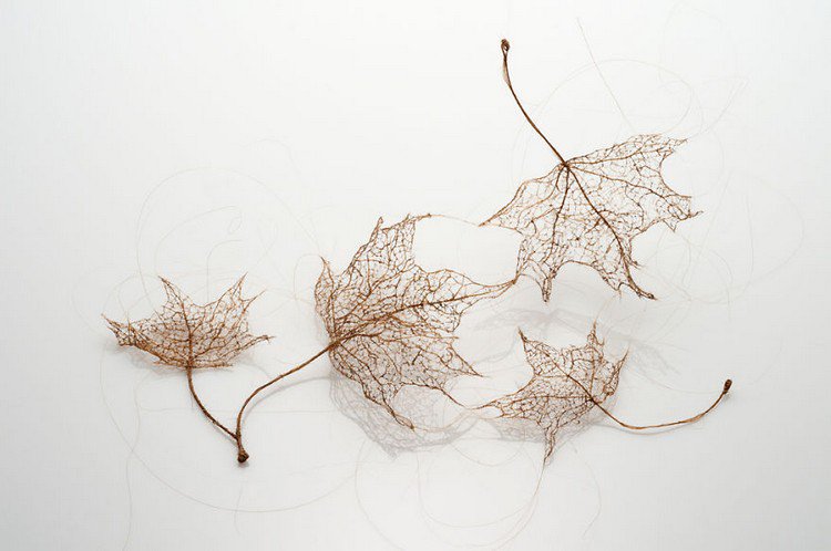 Chicago, Illinois-born installation artist and sculptor Jenine Shereos specializes in textiles and fibers. She has won many awards for her work and has been published by a variety of top magazines and newspapers. Currently living in Boston, Massachusetts, Shereos has created these incredibly ornate and delicate leaves from human hair! She came up with the unusual idea while hiking in northern California. Discovering skeleton leaves in her path, she was intrigued by their amazing patterns and immediately decided that using human hair was the best way to recreate her own version. Take a look!