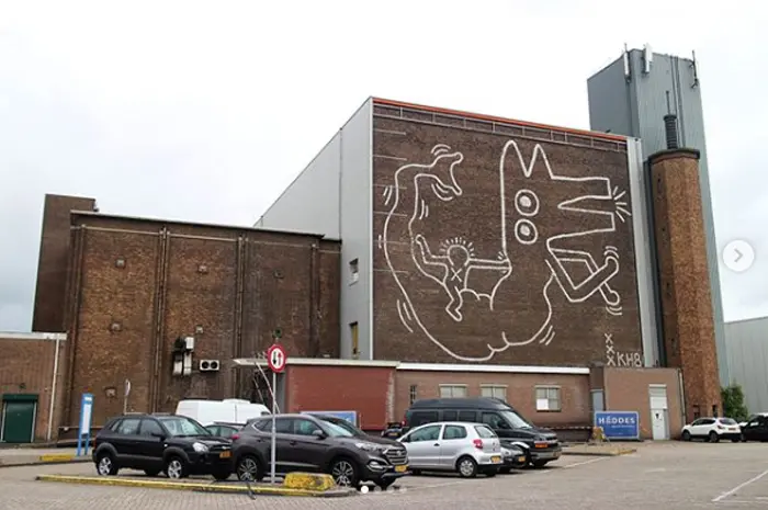 Keith Haring was an American artist who greatly contributed to street-art culture due to his pop art and graffiti-like artworks. Most of his notable murals feature abstract illustrations with comical figures. Evidently, his works clearly manifest the influences of Pablo Picasso and Walt Disney on him. Despite getting inspirations from these two legendary artists, Haring also made his own signature style of drawing. His mural characters are mostly faceless people appearing dynamically due to his clever use of silhouette and lines. And his signature style was plainly present on his monumental mural in Amsterdam.