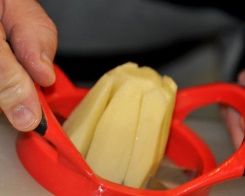 Easily cut potatoes with an apple slicer.