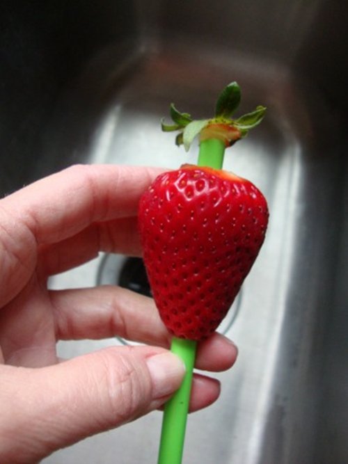 Use a straw to hull a strawberry.