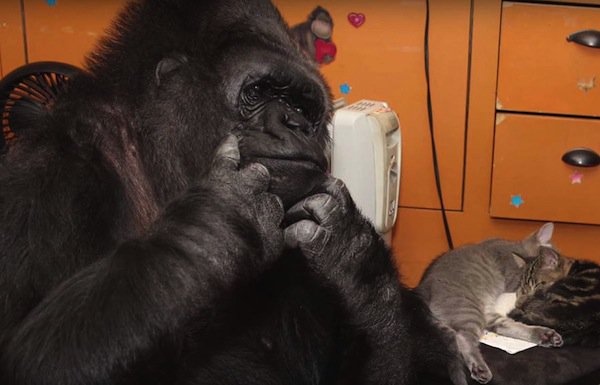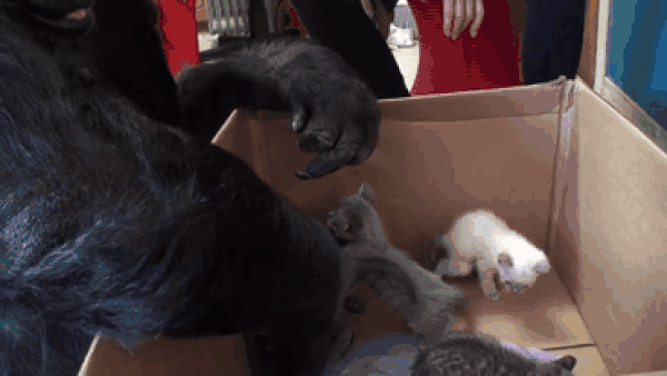 Koko the gorilla is already famous for her knowledge of American Sign Language. Now the intelligent animal, who lives at the Gorilla Foundation in Redwood City, California, is making waves on the internet with the adorable images you will see below. You see, Koko was recently given a special present for her 44th birthday… a box of kittens from which she was allowed to pick two to keep! She already had one cat 'All Ball' which she received after signing that she wanted a cat (and being unsatisfied with a toy one) back in 1984. Now, she has two more felines to play with and care for. She just loves them! Take a look!