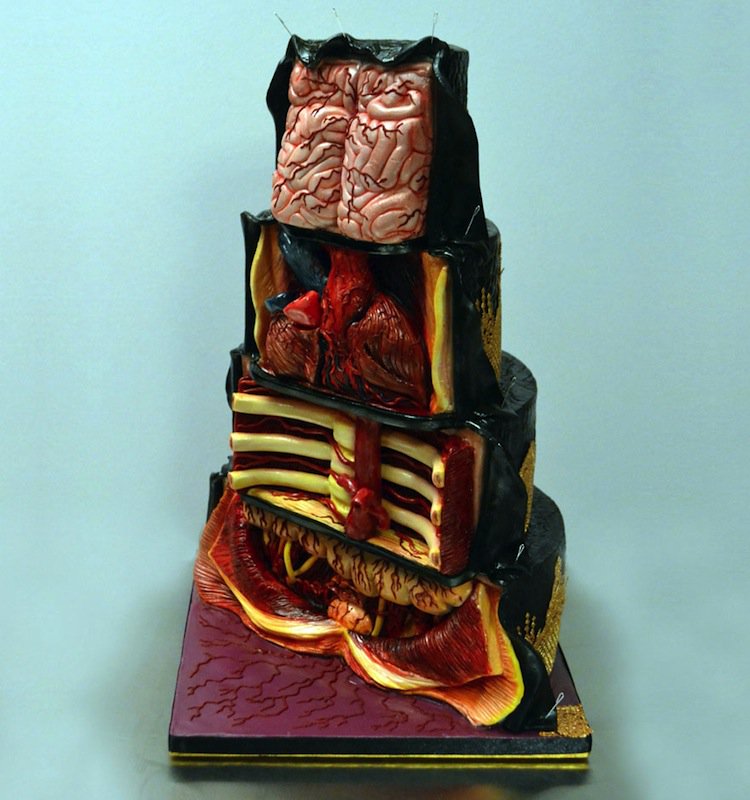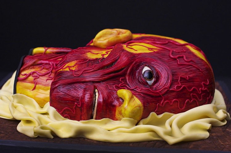 From white chocolate dead babies' heads, to bejeweled skulls, to realistic-looking hearts and animal insides, Annabel de Vetten's cakes are perhaps, for some, too freaky to eat. The German-born cake maker's inspiration comes from horror movies and alternative art. Now living in Birmingham, England, her creepy treats have been snapped up by the likes of the 'British Library', the 'Barbican Museum' and the television series, 'Oddities'. Of her morbid creations, De Vetten told 'Vice', 'You get that little thrill of eating something your eyes tell you not to, but your nose and taste buds urge you to devour'! Check out some of her most frightening work below!