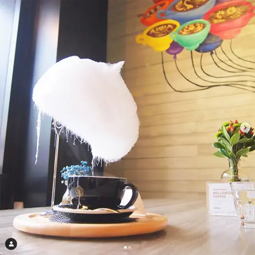 Why is Sweet Little Rain so popular nowadays? When you order this, you’ll get a cup of Americano coffee together with a white cotton candy. Surprisingly, the cotton candy is held by a metal pillar to suspend the fluffy sugar above the hot coffee. But that’s not the best part yet. Wait till the steam of the coffee melts the cotton candy above it. You’ll see sugar drippings coming down from the floating ‘cloud’ and into the coffee. As a result, it looks like you’re getting a tiny storm of sugar rain directly into your mug.