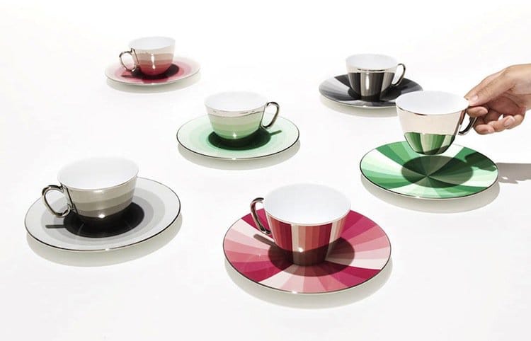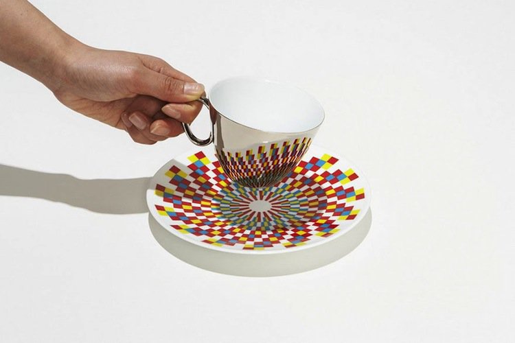 A Japanese design firm called D-Bro has created what are probably the world's first mirrored cups. The range of tea cups is called 'Watlz' and they get their pretty patterns and designs by reflection, when you place them on the saucers they come with. Without the saucers, they are just plain mirrored cups! The cups, which are made from Hasami porcelain, are coated with palladium a precious metal that's rarer than silver or gold. The manufacturers of these cups have to be extremely careful to make the cups absolutely perfect because any slight bump will ruin the effect when they are placed with a saucer. The saucers are painted with all sorts of anamorphic designs. They appear somewhat distorted to the eye when you look at the saucer, however are mirrored into a more cohesive picture on the cup, when it's placed on the saucer. Just like magic!