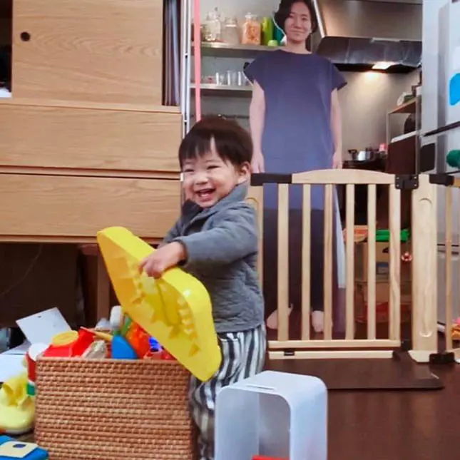 The boy’s dad wrote a caption under the video “It’s hard because my one-year-old child cries as soon as mum disappears. As a countermeasure, I experimented with what would happen if I set up a ‘life-sized panel mother’.”